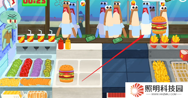5、然后就可以將制作好的蟹皇堡移動(dòng)到顧客的位置。