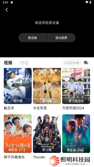 在上方設備列表中,選擇投屏設備,即可開始投屏