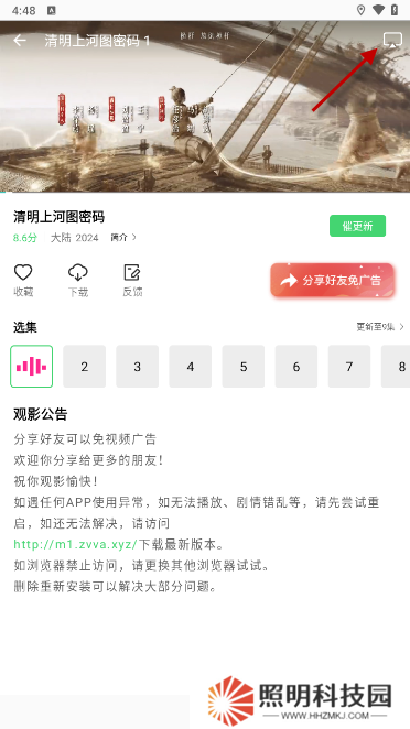 1、選擇自己喜歡看的電視,然后播放,點擊右上角的電視圖標就可以投屏了