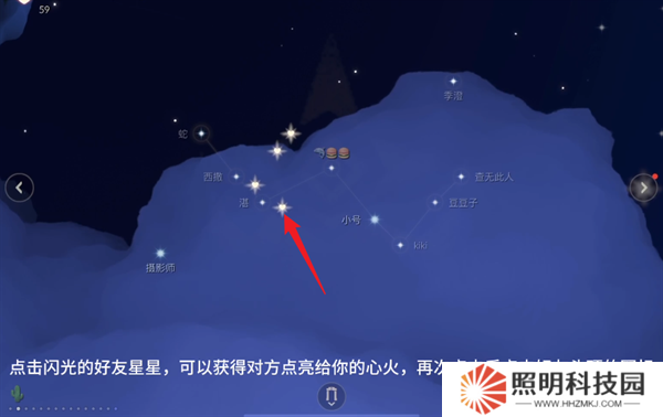 2、然后空中就會顯示好友的新盤,此時點擊正在閃光的好友星星。