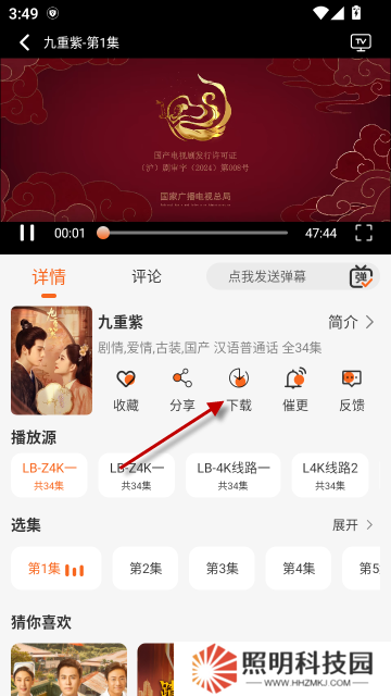 點擊視頻播放下面的下載按鈕,就可以緩存視頻了