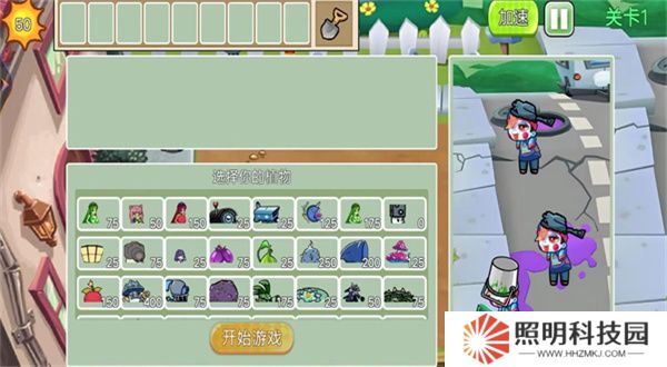 4、進(jìn)入到關(guān)卡內(nèi)后,可以看到右側(cè)是僵尸的類型,選擇植物搭配進(jìn)行出戰(zhàn)。