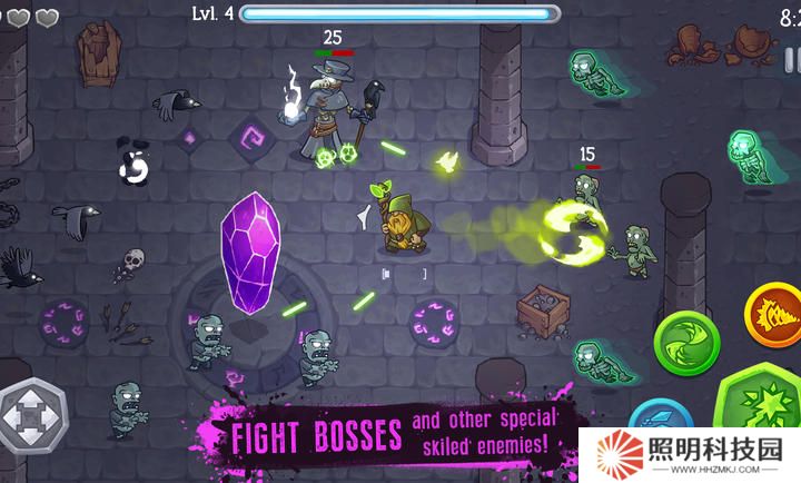 法師大戰(zhàn)僵尸手游還是一款卡通風(fēng)格的肉鴿冒險(xiǎn)類游戲。玩家在游戲中將扮演一位魔法師,你要通過自己的能力在地圖中探索戰(zhàn)斗,肉鴿的玩法,無盡的敵人不斷地入侵,通過自己的技能應(yīng)對。不斷地戰(zhàn)斗升級,解鎖更加強(qiáng)大的