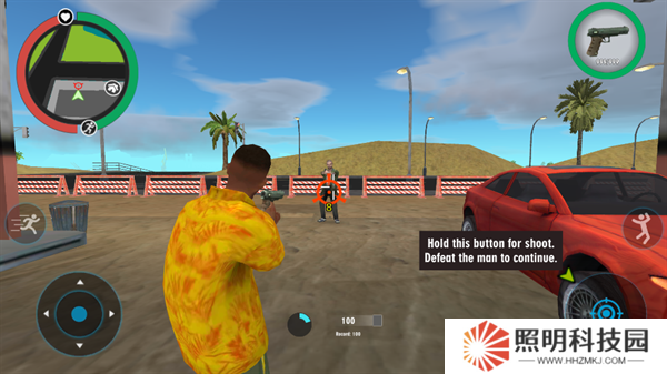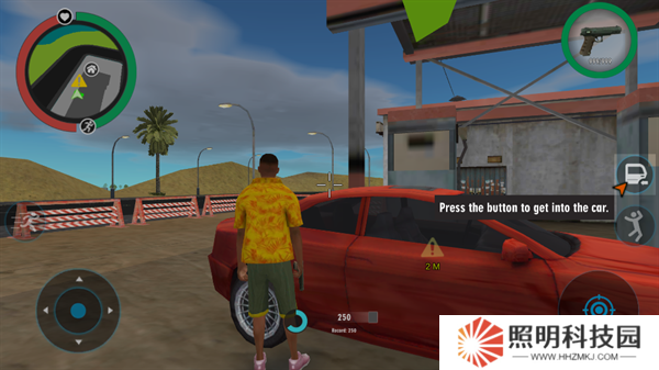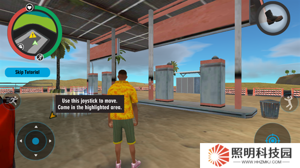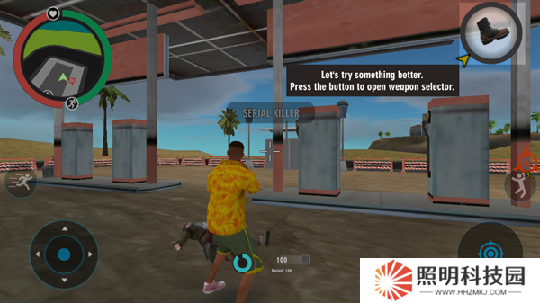 1、玩家們進入游戲之后,將會作為一名黑幫成員開始進行行動。移動左下角的輪盤就能夠控制自己的角色進行移動。