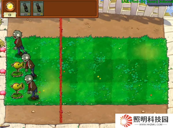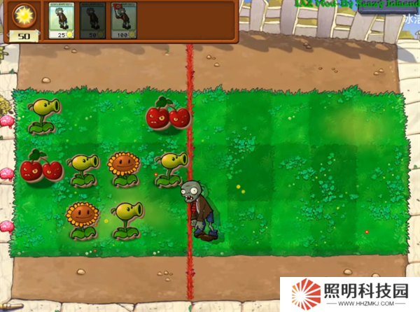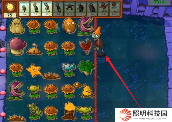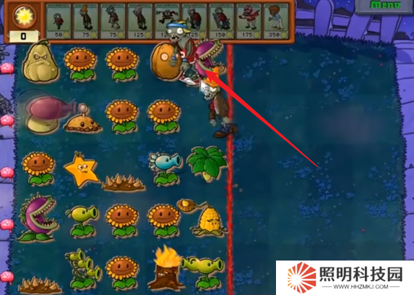 4、同理,積攢陽光在三路放置梯子僵尸。