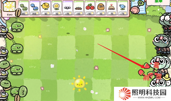 1、首先玩家們需要在關卡的場景當中進行西瓜投手的種植,以此才能夠與僵尸之間進行作戰。