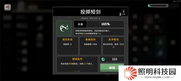 6、后面將涂毒改造4星擊殺111個敵人解鎖投拋短劍,在獲得涂毒的情況下帶啟動飛鏢和投拋短劍,系統默認解鎖多重打擊,因為都是物理標簽所以可以解鎖毒刃。