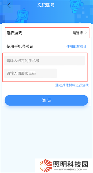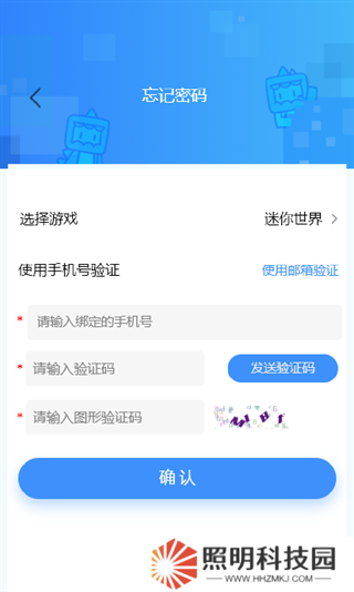 4、忘記賬號的話,你需要點擊后先選擇迷你世界游戲,要是記得迷你號所綁定的手機號碼,可以輸入手機號后再輸入驗證碼并點擊確認。