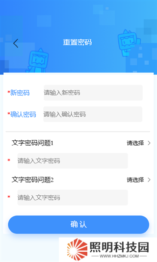 9、然后輸入要重置的新密碼,選擇兩個文字密碼問題輸入對應答案后點擊確認就可以重置密碼了。