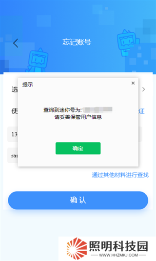 5、如果查詢到手機號對應綁定的手機號碼,就會直接彈窗告知對應的迷你號。