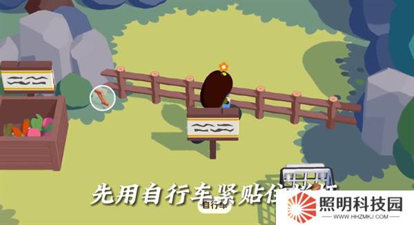 1、玩家們首先需要準備一個自行車以及小籃子,然后騎著自己的自行車前往未開放區域的邊緣。。