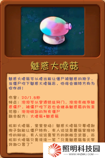 特點:泡泡可以穿透鐵絲網門,泡泡有祗率魅惑僵P,被僵尸吃下后也會繼承魅惑菇的效果范圍:泡泡碰到的所有僵P