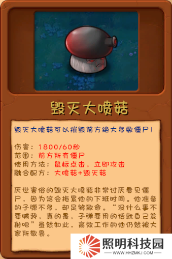 特點:僵尸靠近時噴射大噴菇的泡泡