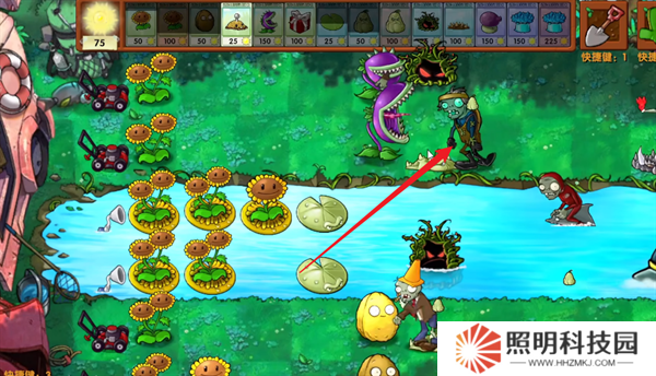 3、除此之外,窩刺還會再攻擊的同時發射小窩瓜,對一整排的僵尸造成一定的傷害。