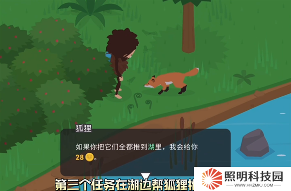1、玩家們首先需要參考那個自己的大腳怪找到河邊的狐貍,并接取推木舟的任務。