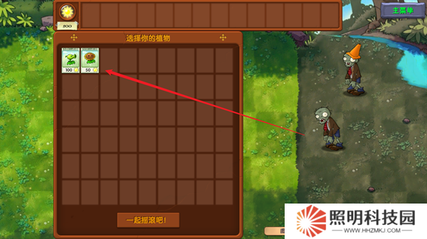 4、進入關卡之后,將植物的卡牌拖動到已經種植植物的地塊上就能夠完成融合的操作。