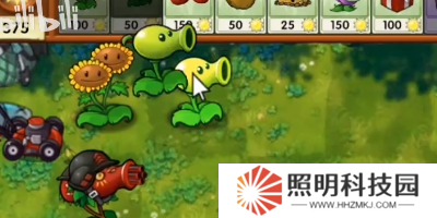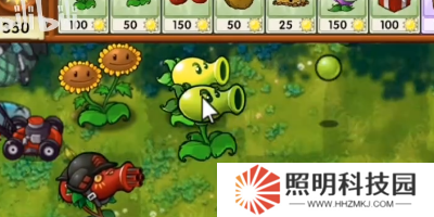 1、玩家們首先需要在豌豆射手上面種植另一株豌豆射手,讓其融合成雙發射手。
