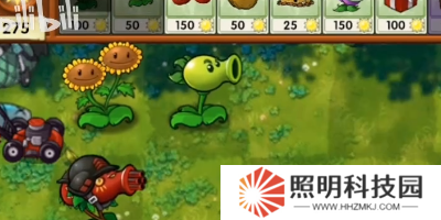 4、在另一株豌豆射手上種植櫻桃炸彈,讓其成為櫻桃射手。