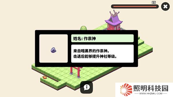 6、驅魔,惡魔會時不時來騷擾,提高神社的等級不斷擊退他們吧。