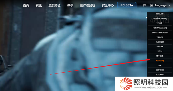 1、玩家們首先需要輸入(arenabreakout.com)進入到游戲的網站當中,點擊右上角的語言。
