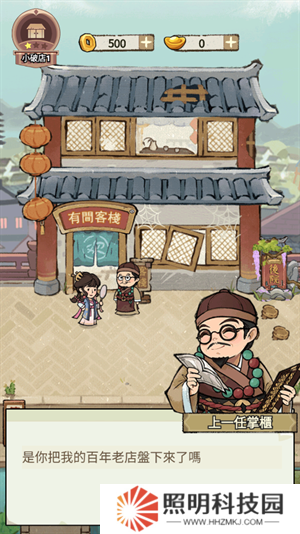 1、在55手游下載安裝進入到游戲內后,從上一任掌柜中盤下了百年老店。