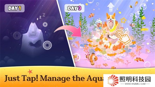 2、點擊屏幕就能夠在場景當中創造珊瑚,吸引來造型各異的深海魚群讓場景更加豐富。