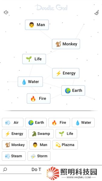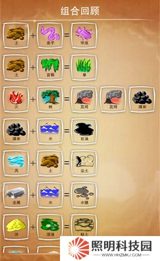 游戲玩法極具創(chuàng)意,玩家通過將兩個分組中的元素進行結(jié)合就能產(chǎn)生新的元素,例如土和火可以產(chǎn)生巖漿,巖漿和水可以產(chǎn)生巖石和水蒸氣,土和風(fēng)可以產(chǎn)生塵土,水和塵土可以產(chǎn)生沼澤等等。