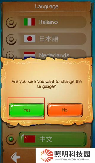 4、點擊中文的選項,并在彈窗之中點擊“yes”確定。
