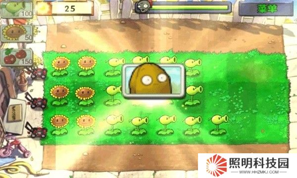 3、每一排種植一個冰爽豌豆射手,可以有效的減慢僵尸的前進速度,為你贏取更多時間。