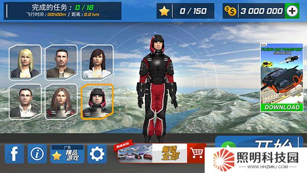 2、在主界面可以自由選擇各種獨特的人物角色來開啟飛行冒險。