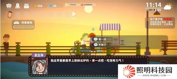 2、共享單車每次使用需花費2r,上下車各算一次,需規劃好行程,車上可與街上的鎮民對話、購物,但限于街道上的鎮民,騎行時加速可消耗精力值獲得活力經驗(紅色)。