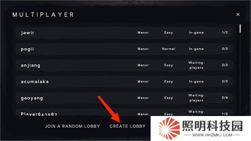 3、在創(chuàng)建房間的界面中可以設(shè)定房間名字、游戲難度以及期望的玩家人數(shù),完成設(shè)定后,請點(diǎn)擊【CREATE A LOBBY】按鈕就成功創(chuàng)建了。