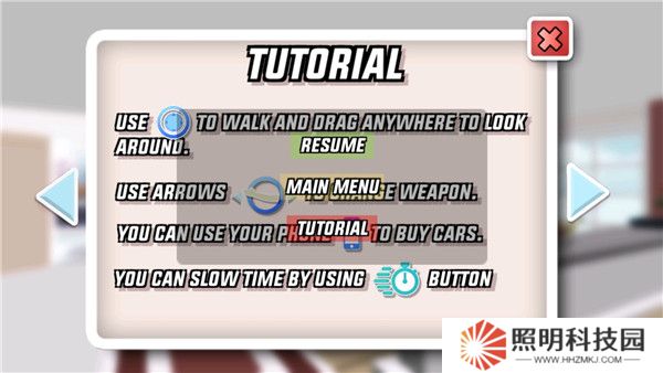 4、首次進(jìn)入游戲時,先點擊右上角的“暫停”按鈕,然后選擇“教程”選項,以便詳細(xì)了解游戲的操作方法和基本規(guī)則。