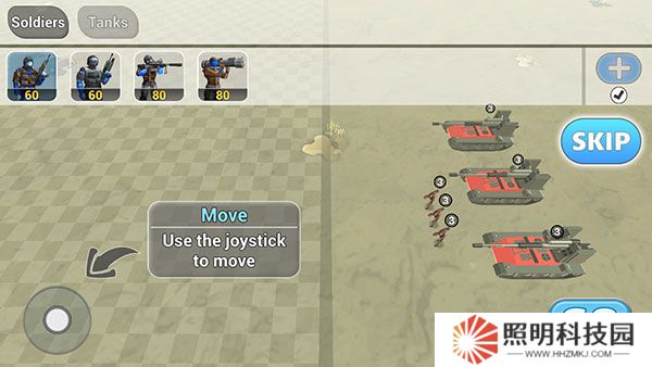 使用左下角操縱桿可以移動戰(zhàn)場視角。