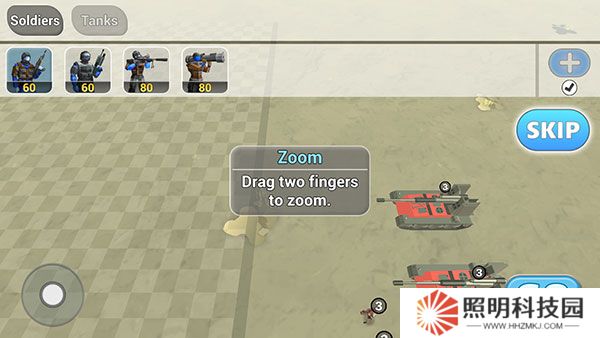 使用兩個手指拖動可以進行戰(zhàn)場縮放。