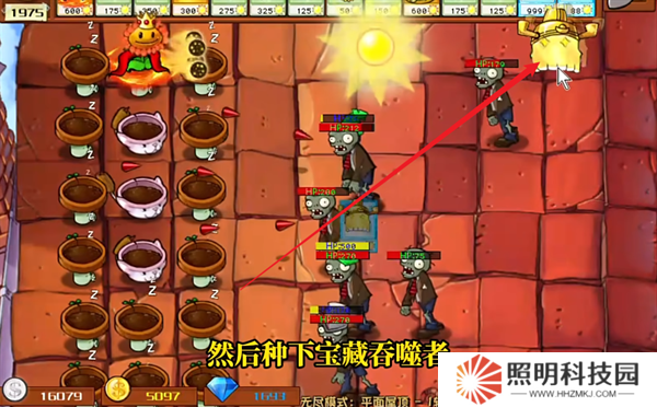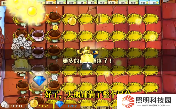 10、打完第一波旗,并處理完成當前場上的僵尸之后,就能夠開始進行刷鉆石的操作。