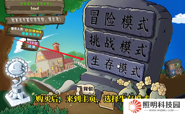 1、玩家首先在本站里面下載安裝完成植物大戰僵尸2.2版本,登錄到游戲的主頁面之后,選擇挑戰模式。