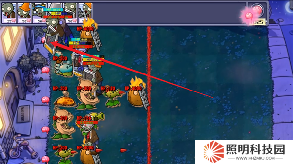2、通過消耗指定數量的腦子,你就能夠在關卡的紅線右側召喚僵尸來與植物之間進行作戰。