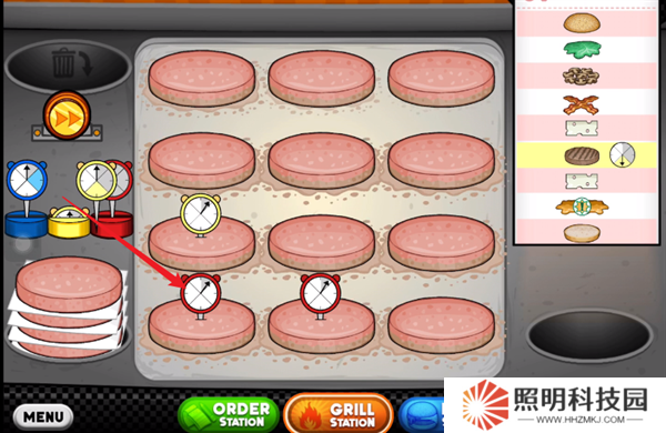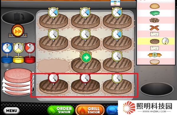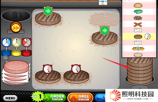 5、當肉餅的兩面都烤好之后,玩家們就能夠將其放置在右側。