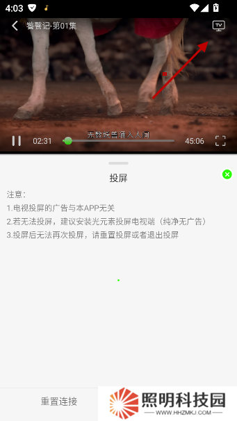如果你想電視投屏的話,點擊右上角的tv圖標(biāo)就可以投屏了