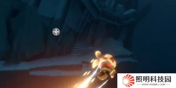 6.往左蹭云向上飛,隨后再往右蹭云飛行,直到看到下方有黑色三級形,記得提前垂直下落到三角形中。