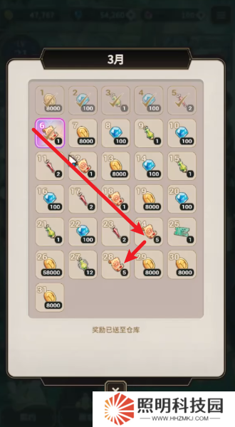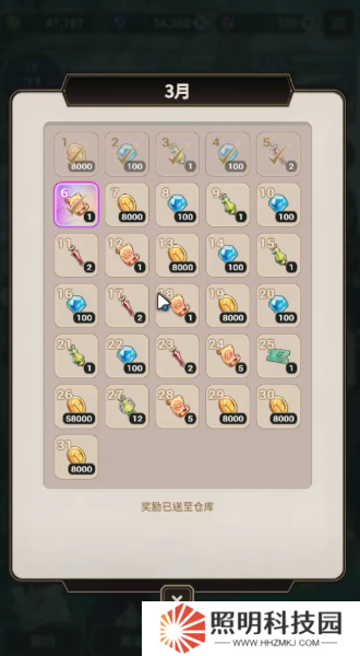 2、這里會(huì)出現(xiàn)一個(gè)彈窗,將本月的所有簽到獎(jiǎng)勵(lì)都顯示出來(lái),并對(duì)當(dāng)前的簽到情況進(jìn)行記錄。