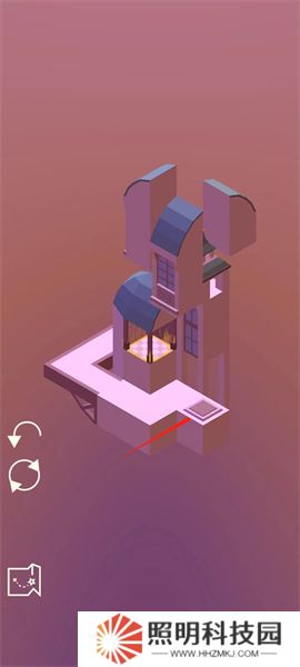 3、第二關則需要走到這個按鈕這里,讓這里的建筑掉下來,就可以走進去。