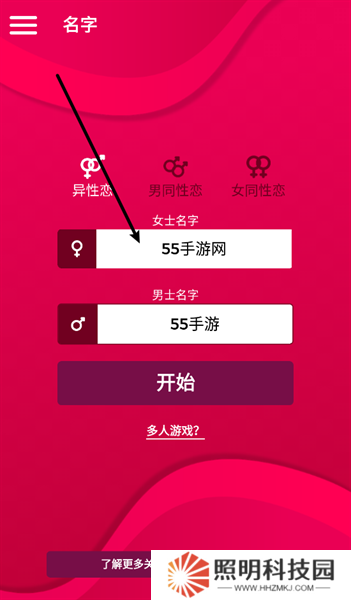 1、玩家們進入游戲之后填入雙方的名字,就能夠點擊下方的【開始】按鈕進行游玩。