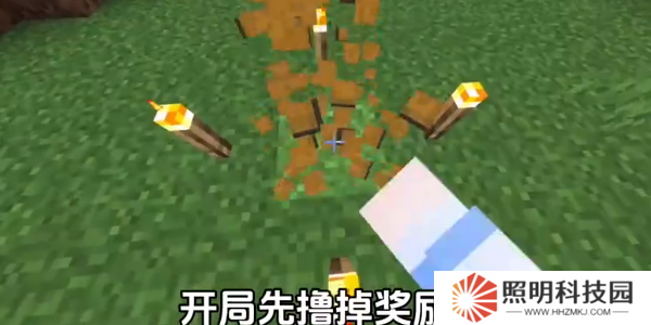 1.開局先擼掉獎勵箱,打掉4根火把后挖些木頭,快速打開背包分解木板做出工作臺,前期需要快速發育,因此要盡快帶走工作臺。