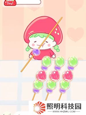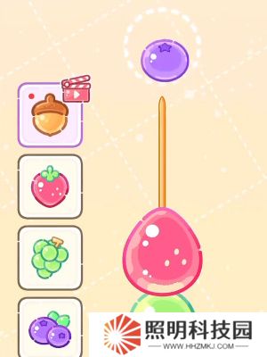 1.打開游戲,將水果放在上方虛線中,串成糖葫蘆。