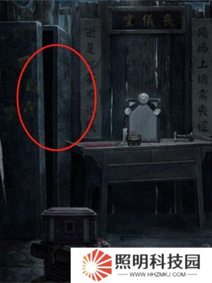 11、將不倒翁放在地上的玩具圈中隨后獲得福字旗和紙元寶,將面包、紙元寶放到墳場墳墓群前的石供桌上,按大石碑上的線索調整紙元寶的位置,然后就會開啟進入喪儀堂的道路。
