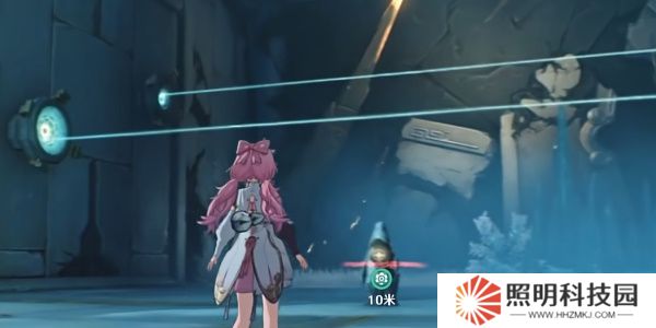 8、第四個防御節點是需要玩家使用移星鑰在準確的時間內將上下移動的柱子暫停使它們射出的光線可以對準另一側墻壁上的光圈就可以了。