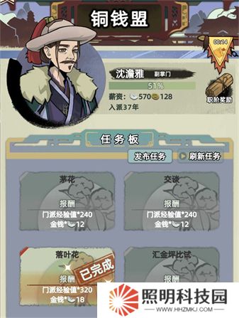 根據職位的不同影響薪水的不同,做門派任務得到經驗并通過門派武考升職。