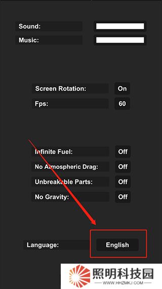 2、進入到設置界面之后,再次點擊下方的English語言按鈕。